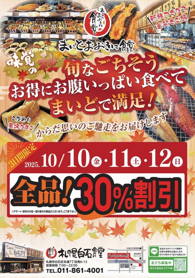 2025年10月10日(金)・11日(土)・12日(日)の3日間限定で、全品30%割引セールを開催いたします!